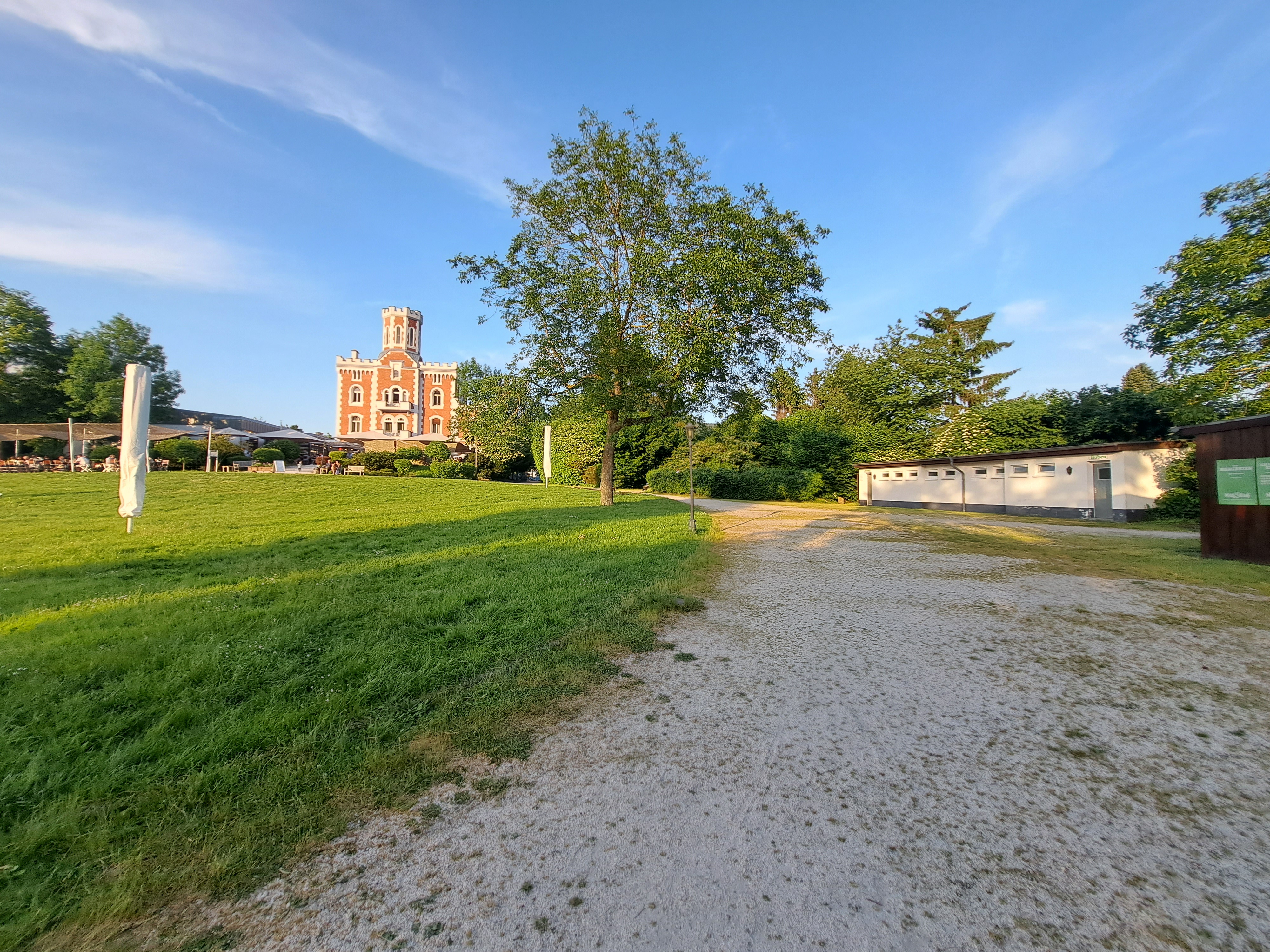 Naast de biergarten is een paatje dat naar een wc blok leid met een aangepaste toilet erbij.